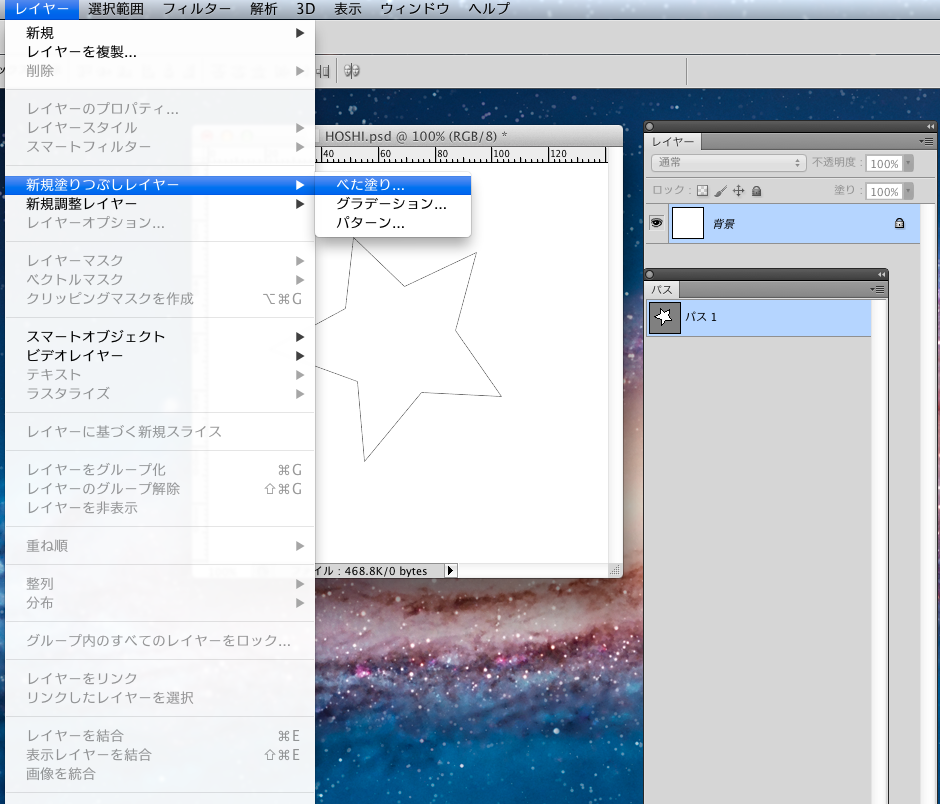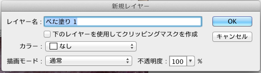 レイヤーメニュー > 新規塗りつぶしレイヤー > べた塗り