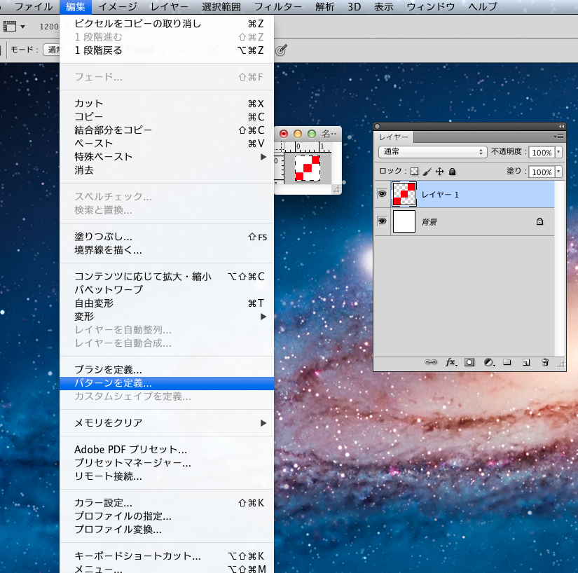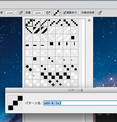 ↓最後にパターン登録してできあがり、CS5だと透過が無理か。。。